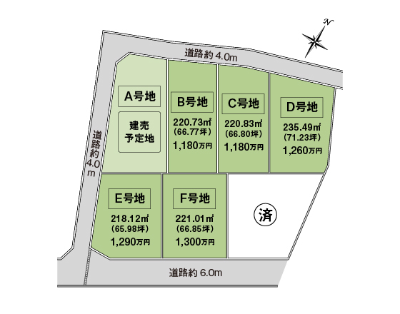 シークエンス可児市大森4区画とも70坪超え!前道6m以上。緑豊かな住宅地。 |
